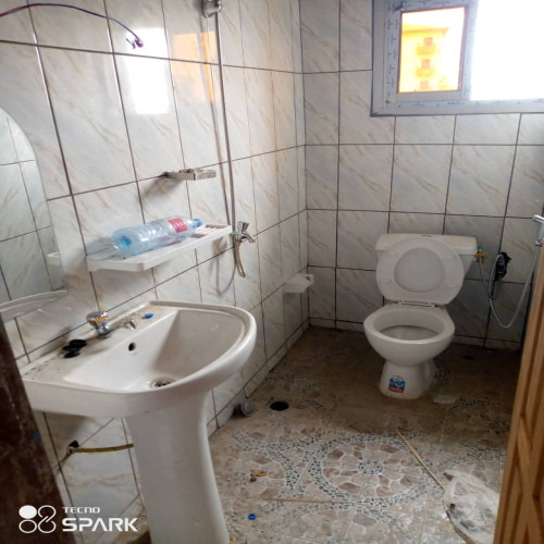Cet appartement en fin de travaux situé au 2e étage d'un immeuble à Akwa-nord est constitué de : Deux chambres, un salon, une cuisine, deux douches.